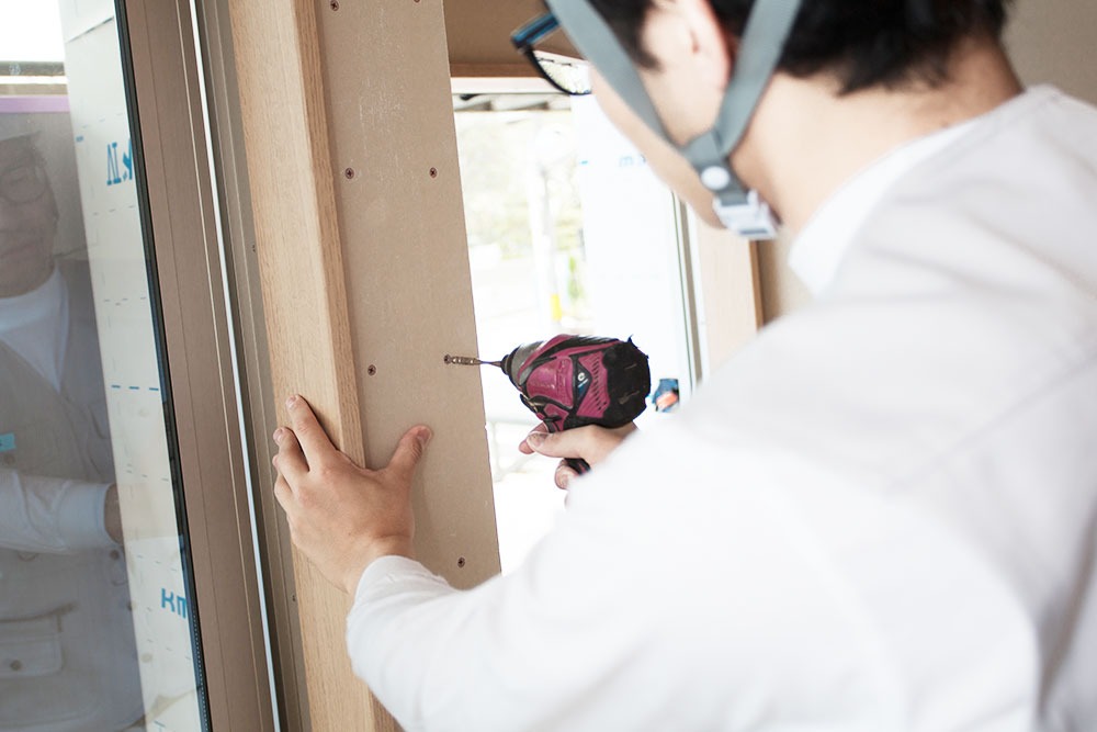 熊本市中央区に拠点を置く弊社は、建具取り付けやサッシ取り付け、ボード貼り、棚つけ、換気扇設置などを始めとした内装工事を主に行っております。